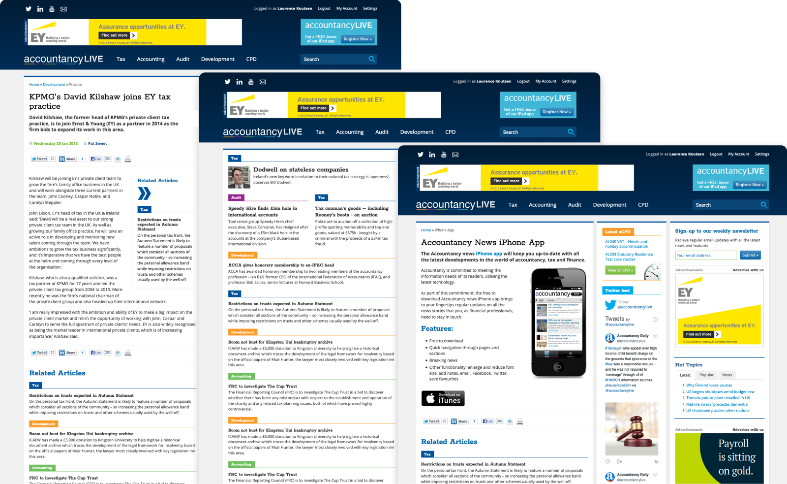 I initiated and led the transition to using responsive design in the UK. I created the first responsive site in the UK, perhaps globally, dedicated to the 2013 Budget, requested by the CCH content awareness team. This was over two years before the Wolters Kluwer global site became responsive in Q4 of 2015.