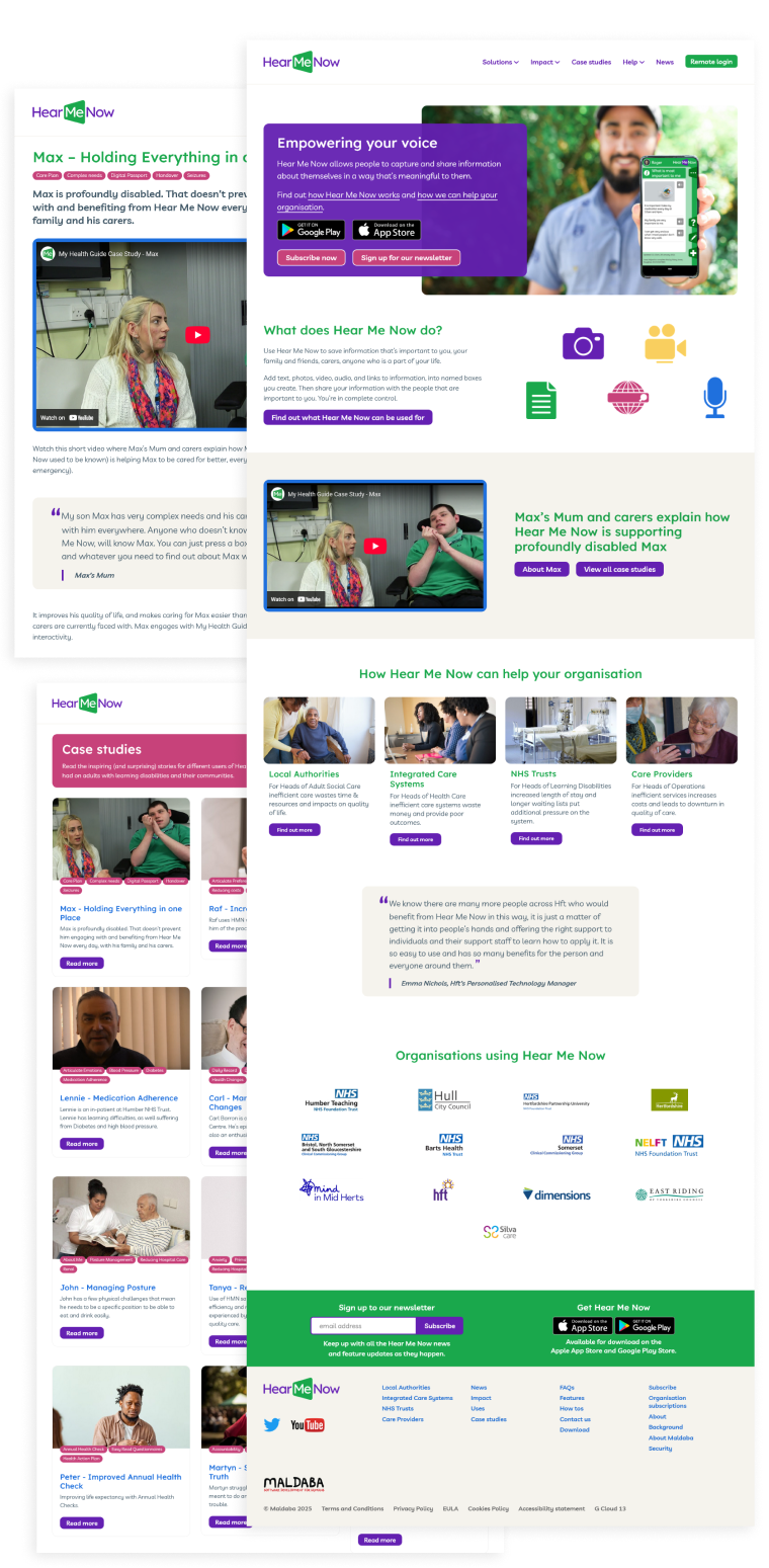 Hear Me Now (formerly known as My Health Guide) was developed by Maldaba in conjunction with Humber NHS Trust and funding by SBRI Healthcare, and was funded by NHS Accelerated Access Collaborative.